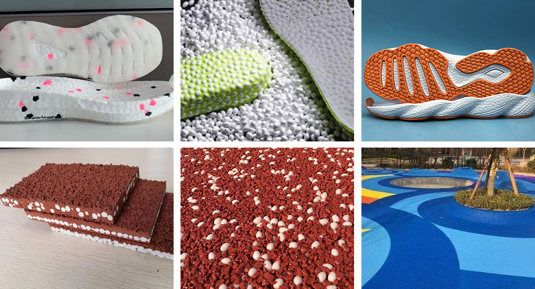 CO2發(fā)泡技術生產出來的E-TPE發(fā)泡顆粒以及EVA顆粒在各種運動鞋鞋底和鞋中底廣泛應用,比以往傳統(tǒng)技術生產出來的發(fā)泡顆粒重量輕,彈性好,緩沖減震效果好,這種產品生產出來的鞋底被業(yè)界形象的稱為爆米花鞋底。